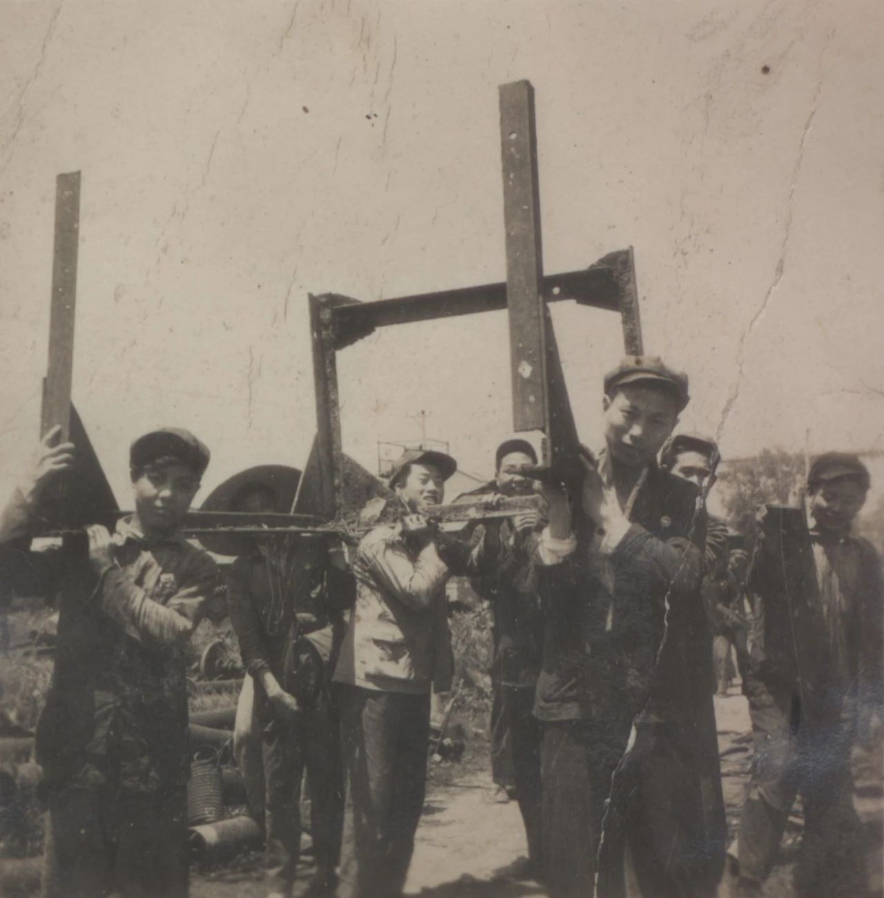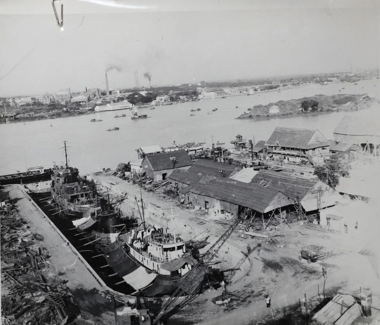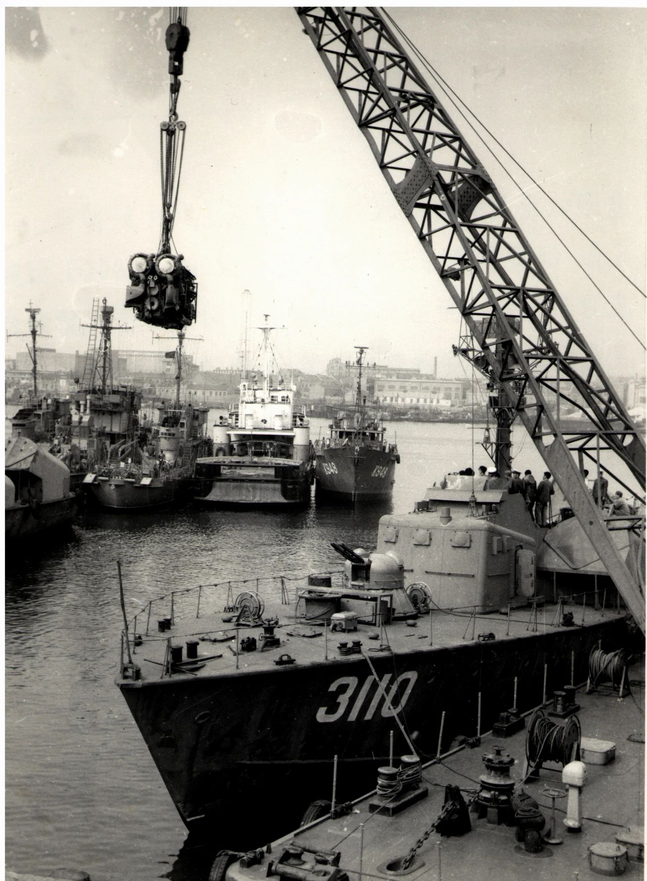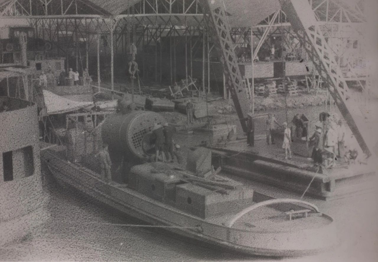 1958年廣州,1958年,廣船國(guó)際的前身廣州造船廠的造船塢,圖中的履帶式起重機(jī)是廣州造船廠主要的起重設(shè)備。
