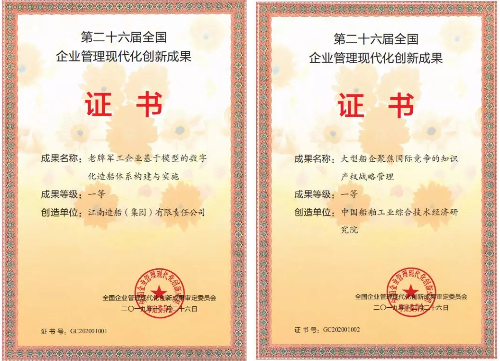 所屬江南造船(集團)有限責任公司申報的《老牌軍工企業(yè)基于模型定義的數(shù)字造船新模式構建與實施》和中國船舶工業(yè)綜合技術經(jīng)濟研究院申報的《大型船企聚焦國際競爭的知識產(chǎn)權戰(zhàn)略管理》分獲國家級一等獎。本屆僅有30項一等獎,另有4項成果榮獲國家級二等獎,獲獎成果數(shù)量創(chuàng)船舶行業(yè)歷年最好成績。