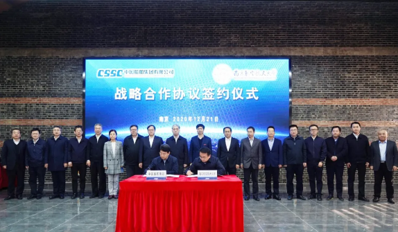 12月21日,中國(guó)船舶集團(tuán)有限公司在南京分別與南京航空航天大學(xué)、江蘇科技大學(xué)簽署戰(zhàn)略合作協(xié)議。中國(guó)船舶集團(tuán)黨組書(shū)記、董事長(zhǎng)雷凡培,黨組副書(shū)記、總經(jīng)理?xiàng)罱鸪?,黨組成員、副總經(jīng)理錢(qián)建平、杜剛,南航黨委書(shū)記鄭永安,黨委副書(shū)記、校長(zhǎng)單忠德,江科大黨委書(shū)記葛世倫,黨委副書(shū)記、校長(zhǎng)周南平等領(lǐng)導(dǎo)出席簽約儀式。