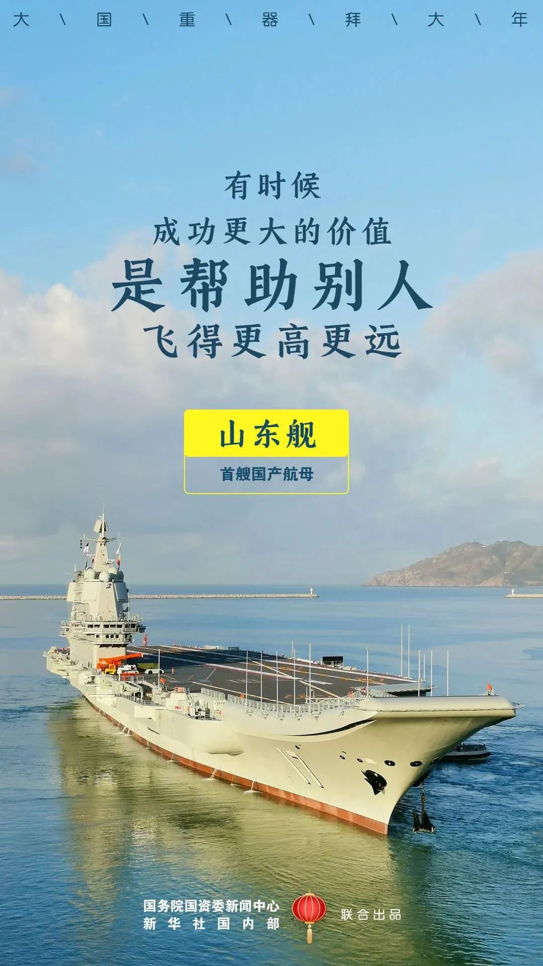 大年初一新年到! 中國船舶給您拜年啦! 知道您收到的祝福已很多 中國船舶的不一樣 送您兩個超級重磅 大國重器拜大年 山東艦 祝您牛氣沖天,一路遠(yuǎn)航!