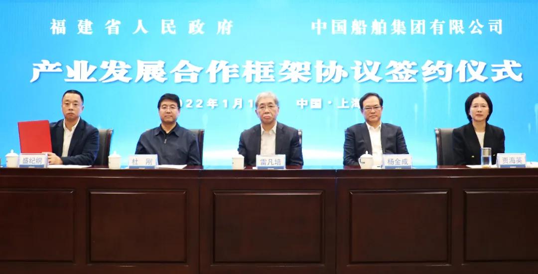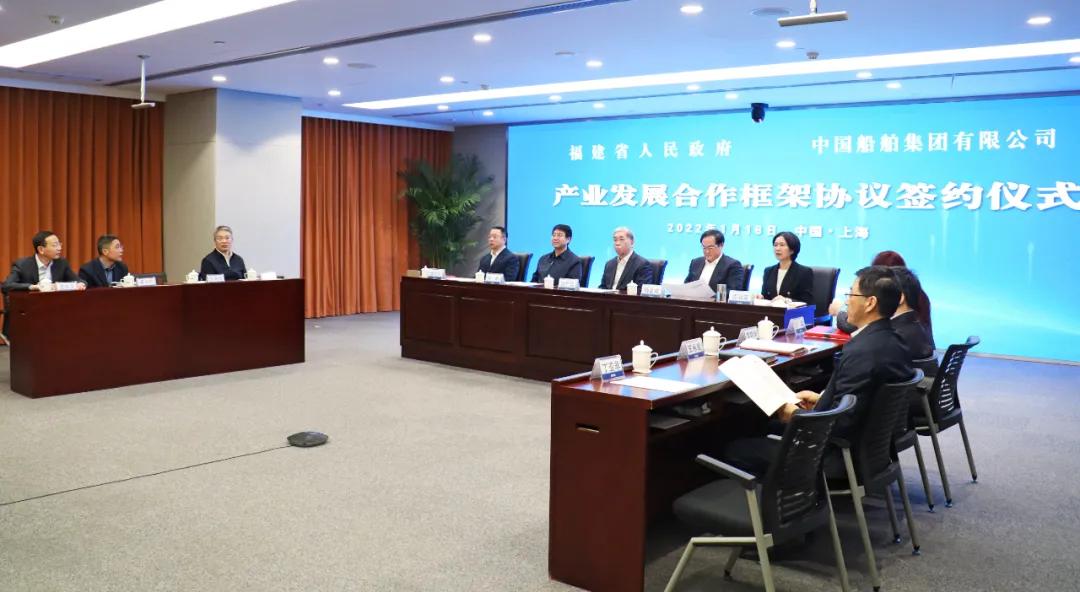 1月18日,中國船舶集團有限公司與福建省人民政府通過“云簽約”方式簽署戰(zhàn)略合作協(xié)議。中國船舶集團黨組書記、董事長雷凡培,黨組副書記、總經(jīng)理楊金成,黨組副書記、董事杜剛,黨組成員、總會計師賈海英,黨組成員、副總經(jīng)理盛紀綱;福建省委書記尹力,省委副書記、代省長趙龍,省委常委、常務副省長郭寧寧,省委常委、秘書長吳偕林,副省長康濤出席簽約儀式。盛紀綱、郭寧寧分別代表雙方在協(xié)議上簽字。