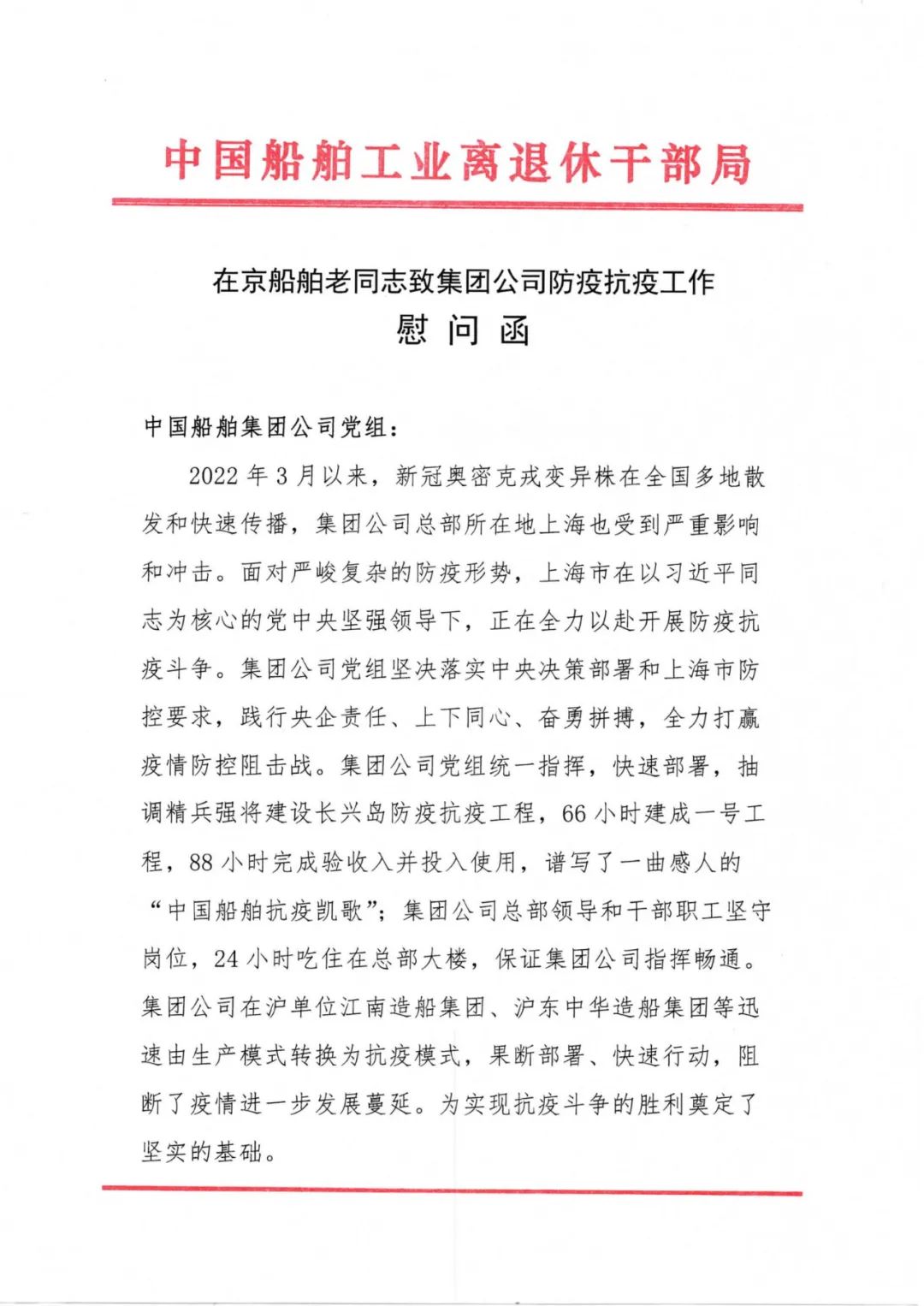 抗疫形勢嚴(yán)峻復(fù)雜,中國船舶集團離退休老領(lǐng)導(dǎo)老同志關(guān)注抗疫、心系集團,為干部職工加油鼓勁。