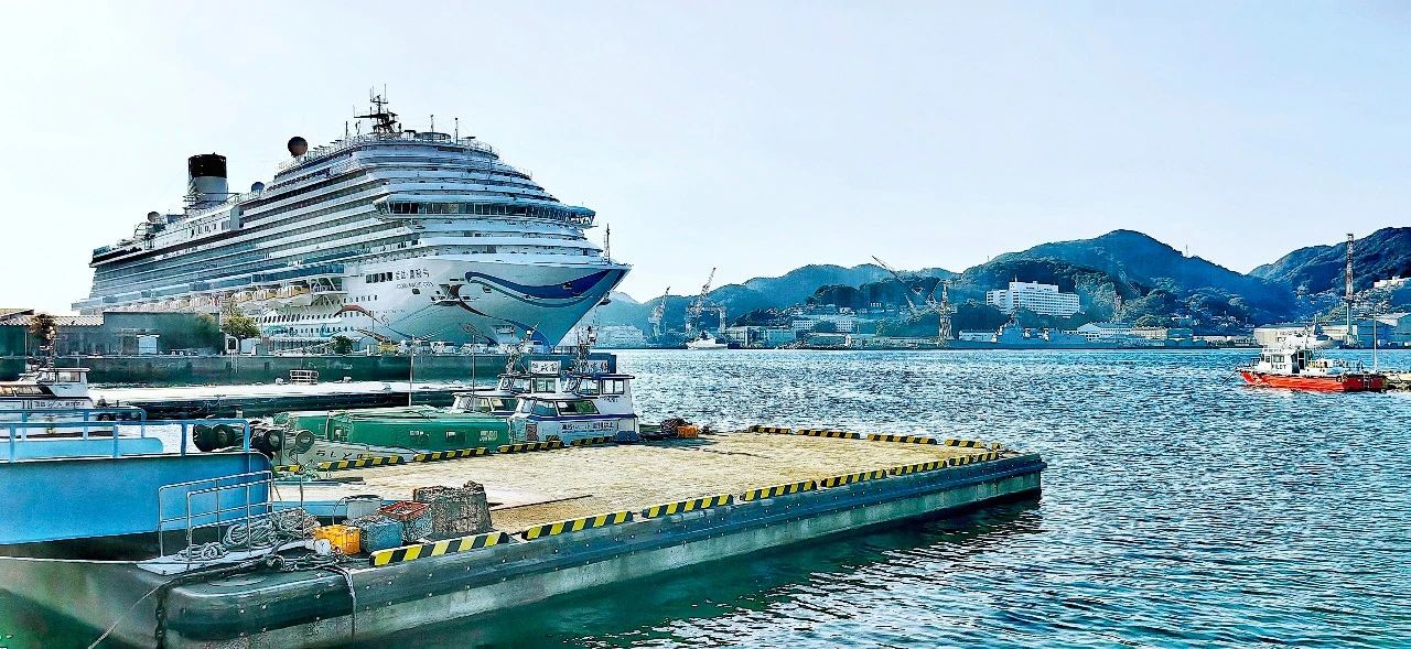 中國首艘國產(chǎn)大型郵輪“愛達(dá)·魔都號”與曾經(jīng)建造過郵輪的日本三菱重工船廠隔江相望。