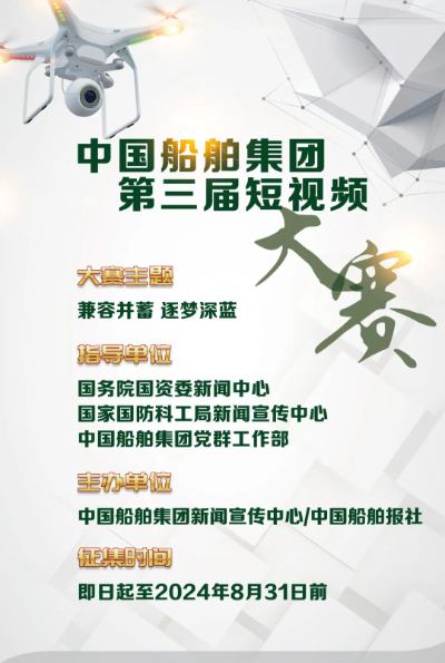 2024年是新中國(guó)成立75周年,也是全面貫徹黨的二十大精神的關(guān)鍵之年。這一年,中國(guó)船舶集團(tuán)以習(xí)近平新時(shí)代中國(guó)特色社會(huì)主義思想為指導(dǎo),全面實(shí)施“1234”高質(zhì)量發(fā)展方略,以“三贏”提質(zhì)效、以改革求突破、以創(chuàng)新促發(fā)展,全面開(kāi)創(chuàng)建設(shè)世界一流船舶集團(tuán)新局面。為更加全面生動(dòng)展示中國(guó)船舶人凝心聚力、砥礪奮發(fā),建設(shè)世界一流,向新中國(guó)成立75周年獻(xiàn)禮的精神風(fēng)貌與奮斗熱情,中國(guó)船舶集團(tuán)新聞宣傳中心/中國(guó)船舶報(bào)社組織開(kāi)展“兼容并蓄 逐夢(mèng)深藍(lán)”為主題的中國(guó)船舶集團(tuán)第三屆短視頻大賽。