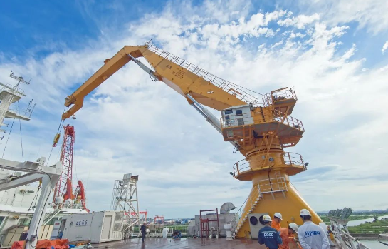中國(guó)船舶集團(tuán)旗下華南船機(jī)為“夢(mèng)想”號(hào)配套重要作業(yè)設(shè)備——50噸折臂起重機(jī),助力“夢(mèng)想”起航。