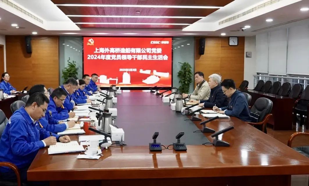 中船集團(tuán)旗下外高橋造船黨委召開2024年度黨員領(lǐng)導(dǎo)干部民主生活會。集團(tuán)公司黨組書記、董事長徐鵬到會指導(dǎo)并點評。