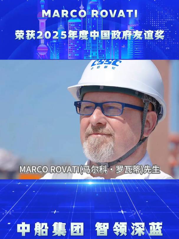 近日,2025年度中國政府友誼獎頒獎儀式在人民大會堂隆重舉行,國務委員諶貽琴為獲獎外國專家頒獎。中國船舶集團有限公司旗下中船郵輪新造船團隊項目經(jīng)理 MARCO ROVATI(馬爾科?羅瓦蒂),因在推動中國郵輪產(chǎn)業(yè)高質(zhì)量發(fā)展方面作出的突出貢獻,榮獲此項國家級榮譽。