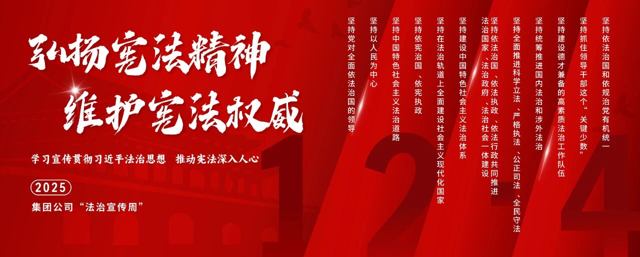 今年12月4日是第十二個國家憲法日。中國船舶集團有限公司深入貫徹落實中央宣傳部、司法部、全國普法辦《2025年全國“憲法宣傳周”工作方案》部署要求,以“學(xué)習(xí)宣傳貫徹習(xí)近平法治思想,推動憲法深入人心”為主題,精心組織開展2025年法治宣傳周系列活動?;顒訉W(xué)習(xí)貫徹習(xí)近平法治思想、習(xí)近平文化思想及憲法精神,與法治央企建設(shè)要求以及集團“懸規(guī)植矩 循序善治”特色法治文化深度融合,為加快建設(shè)世界一流船舶集團厚植法治土壤、注入強勁法治動能。