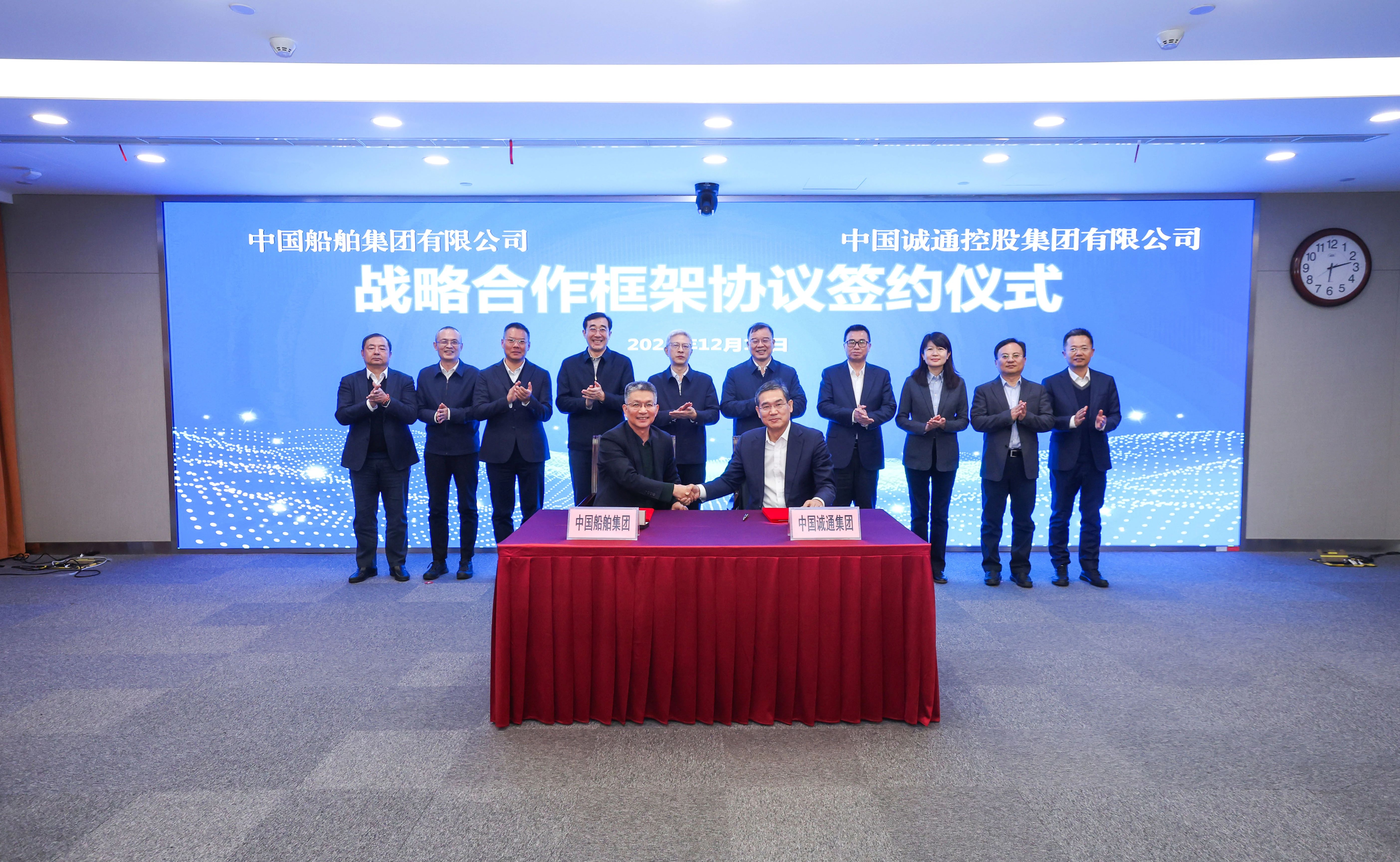 12月16日,中國船舶集團(tuán)有限公司與中國誠通控股集團(tuán)有限公司在上海簽署戰(zhàn)略合作框架協(xié)議。中船集團(tuán)黨組書記、董事長徐鵬,中國誠通集團(tuán)黨委書記、董事長奚正平,黨委委員、副總經(jīng)理童來明出席簽約儀式。中船集團(tuán)黨組成員、總會(huì)計(jì)師朱永紅,中國誠通集團(tuán)副總經(jīng)理、總法律顧問唐國良分別代表雙方在協(xié)議上簽字。簽約前,雙方就進(jìn)一步加強(qiáng)溝通交流、深化多領(lǐng)域合作進(jìn)行了交流探討。