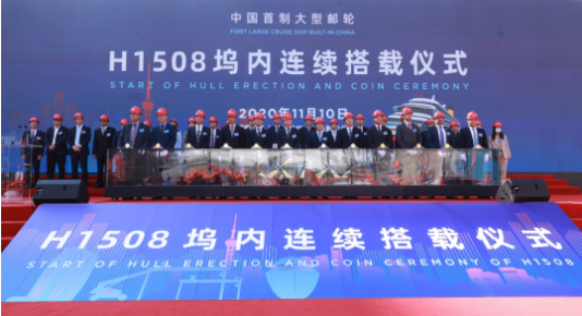 大型郵輪工程是中國船舶集團(tuán)貫徹習(xí)近平總書記重要指示精神、落實(shí)國家戰(zhàn)略、滿足人民美好生活需要的重大舉措,也是中國船舶集團(tuán)強(qiáng)化科技創(chuàng)新、促進(jìn)轉(zhuǎn)型升級、推動(dòng)高質(zhì)量發(fā)展的一號工程。2018年11月6日,中國船舶集團(tuán)與美國嘉年華集團(tuán)、意大利芬坎蒂尼集團(tuán)在首屆中國國際進(jìn)口博覽會(huì)上正式簽訂2+4艘13.5萬總噸Vista級大型郵輪建造合同,并舉行了中國船舶集團(tuán)大型郵輪項(xiàng)目工程正式啟動(dòng)儀式。這是我國首次簽訂真正意義上的大型郵輪建造合同,開啟了中國船舶工業(yè)建造大型郵輪的新時(shí)代。2019年10月18日,中國首制大型郵輪在外高橋造船正式開工點(diǎn)火進(jìn)行鋼板切割,全面進(jìn)入實(shí)質(zhì)性建造階段。一年多來,在中國船舶集團(tuán)的堅(jiān)強(qiáng)領(lǐng)導(dǎo)下,在中船郵輪科技發(fā)展有限公司、中船第九設(shè)計(jì)研究院工程有限公司、上海船舶工藝研究所等兄弟單位的大力支持下,外高橋造船經(jīng)受住了新冠肺炎疫情的洗禮和考驗(yàn),克服了物資采購、薄板車間流水線建設(shè)滯后等一系列困難,一步一個(gè)腳印,如期實(shí)現(xiàn)了塢內(nèi)連續(xù)搭載總裝的里程碑節(jié)點(diǎn)。