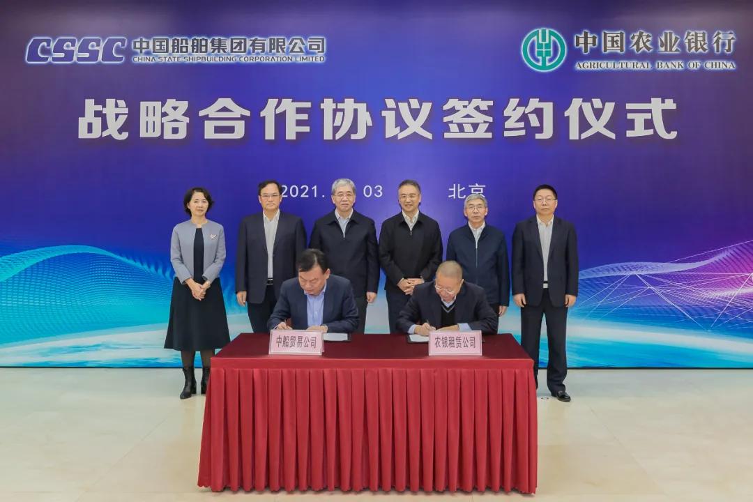 會上,在雙方領(lǐng)導(dǎo)的共同見證下,中國船舶集團(tuán)旗下中船貿(mào)易與農(nóng)業(yè)銀行農(nóng)銀租賃簽署相關(guān)合作協(xié)議。