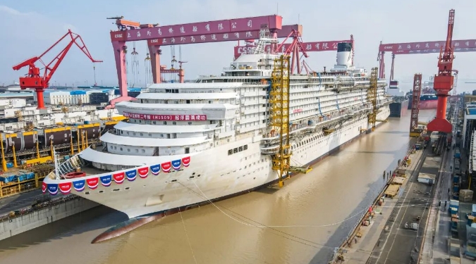 第二艘國(guó)產(chǎn)大型郵輪“愛(ài)達(dá)·花城號(hào)”完成塢內(nèi)起浮
