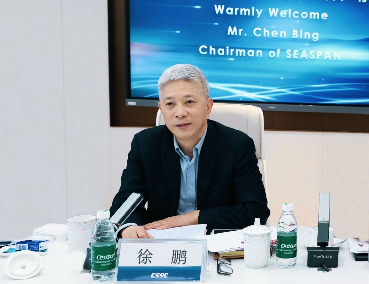 徐鵬對陳兵一行的來訪表示歡迎,并感謝Seaspan公司對中船集團(tuán)的長期信任與支持。徐鵬表示,中船集團(tuán)將持續(xù)提升自身綜合能力,努力為客戶提供更優(yōu)質(zhì)的產(chǎn)品和服務(wù)。Seaspan公司是全球最大的獨立集裝箱船租賃船東公司,與中船集團(tuán)在長期合作中結(jié)下了深厚友誼。未來,希望雙方建立常態(tài)化溝通交流機(jī)制,在船舶建造與升級改造、國際船海市場拓展、船舶全生命周期運維、綠色能源開發(fā)等方面持續(xù)深化進(jìn)一步合作,共同為行業(yè)持續(xù)健康發(fā)展作出應(yīng)有貢獻(xiàn)。