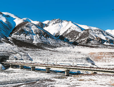 2月26日,位于甘肅、青海兩省交界處的祁連山白雪皚皚,一列動(dòng)車駛出被譽(yù)為世界海拔第一高鐵隧道的祁連山隧道。 成 林?jǐn)z(人民視覺(jué))