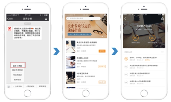 “國(guó)資小新”上線五年來,基于對(duì)粉絲需求的深度了解,先后設(shè)立了“微招聘”、“畢業(yè)去哪兒”、“新思”、“小新薦書”等欄目,并嘗試語音知識(shí)分享,為包括國(guó)企員工在內(nèi)的廣大粉絲提供招聘求職信息、分享企業(yè)管理經(jīng)驗(yàn)、解讀國(guó)企改革發(fā)展的政策和形式,幫助粉絲實(shí)現(xiàn)更好的職業(yè)規(guī)劃和發(fā)展。近期推出的“小新微課”,是“國(guó)資小新”結(jié)合最新技術(shù)手段、在這一領(lǐng)域的又一嘗試,課程免費(fèi),立足公益,為粉絲竭誠(chéng)服務(wù),旨在提供更具權(quán)威性、普遍性、專業(yè)性的職業(yè)發(fā)展服務(wù)。