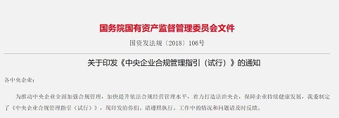 國資委印發(fā)《中央企業(yè)合規(guī)管理指引(試行)》