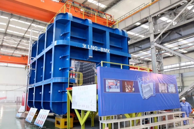 ????11月26日,中國(guó)船舶集團(tuán)所屬大連船舶重工集團(tuán)有限公司舉行“薄膜型液化天然氣運(yùn)輸船技術(shù)研究”科研專(zhuān)項(xiàng)MarkⅢ型液化天然氣船全封閉模擬艙建造完工暨GTT和船級(jí)社頒證儀式。