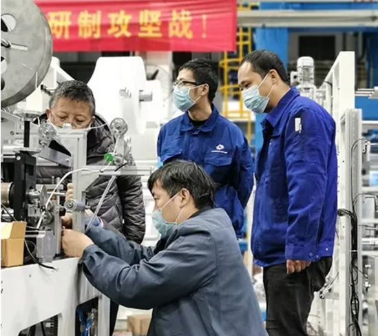 ????2月21日,平面口罩機(jī)樣機(jī)成功下線;2月27日深夜,首臺(tái)平面口罩機(jī)交付;3月5日,僅7天時(shí)間,產(chǎn)品先后發(fā)往中國石油(蘭州)、中糧集團(tuán)、哈藥集團(tuán)等6家企業(yè),輻射范圍涵蓋了我國西北、東北、華北、東南各地,以實(shí)際行動(dòng)完成了一次完美開局。
