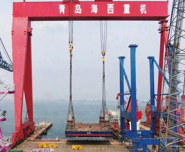 武漢船機完成自升式海上勘探平臺整體吊裝下水重大節(jié)點