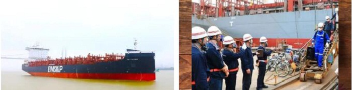 ????H5653船是1500TEU系列船的第二艘,總長171.98米,型寬24.29米,型深13.6米,滿載1500箱,設計吃水7.4米。 項目組及時總結首制船經(jīng)驗,提前消化、及時處理首制船的建造意見;各部門通力協(xié)作,為試航節(jié)點的順利完成全力以赴。