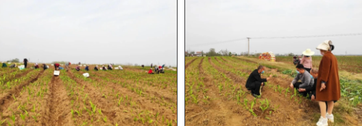 △ 王占偉(右)在田間與村民在一起