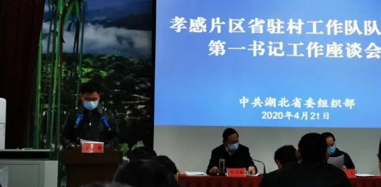 △ 王占偉在關(guān)于孝感片區(qū)省駐村工作隊(duì)隊(duì)長(zhǎng)、第一書記工作座談會(huì)上交流發(fā)言