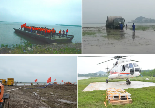 ????在搜救環(huán)節(jié),中船應(yīng)急搶險(xiǎn)隊(duì)架設(shè)動(dòng)力舟橋和硬質(zhì)機(jī)動(dòng)路面進(jìn)行道路搶通,保障重型裝備及人員進(jìn)場(chǎng);在內(nèi)澇搶排環(huán)節(jié),采用應(yīng)急泄流虹吸裝備和履帶式排澇機(jī)器人參與排澇搶險(xiǎn);在重大險(xiǎn)情處置環(huán)節(jié),鋪設(shè)應(yīng)急直升機(jī)停機(jī)坪保障直升機(jī)起降,并實(shí)施潰口封堵作業(yè)。