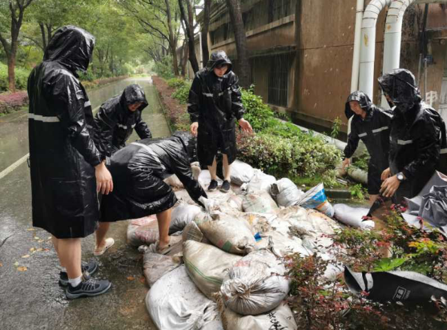 七〇二所及時啟動應急響應,建立各部門汛情排查報告信息網(wǎng)絡(luò),安排現(xiàn)場值守巡查工作;緊急組建應急救援隊,冒著大雨開展全所巡查,查隱患、堵漏洞、搬沙袋、疏管網(wǎng);積極落實防汛措施,及時關(guān)注所辦大樓、地下車庫等重點區(qū)域汛情,安排物業(yè)、水站、電站人員進行24小時輪值,全力保障沙袋、抽水泵等防汛物資儲備,以及食堂的食材供應,做好雨后消毒工作。