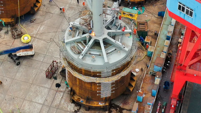 7月31日,廣船國際建造的我國第一臺吸力筒導(dǎo)管架風(fēng)機(jī)基礎(chǔ),在廣州南沙成功發(fā)運(yùn)。吸力筒導(dǎo)管架是海上風(fēng)電場的基礎(chǔ)設(shè)備,這次交付的吸力筒導(dǎo)管架總高63米,足有20層樓的高度,總重量約為1560噸,相當(dāng)于15輛重型卡車滿載的重量,由3個直徑約為13米、高約11米的吸力筒和高52米的上部導(dǎo)管架組成。