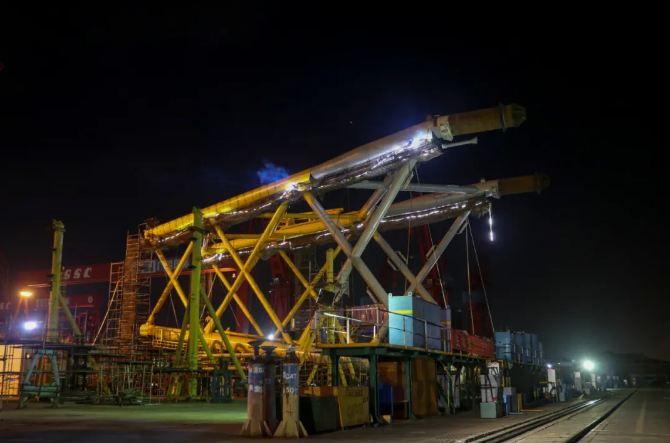 吸力筒導(dǎo)管架風(fēng)機(jī)基礎(chǔ)交付后將用于廣東省陽江市陽西縣沙扒灣300兆瓦海上風(fēng)電項目。