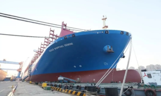 4月10日,大船集團為中遠海運集團建造的20000TEU超大型集裝箱船“中遠海運雙子座”命名交付,刷新了當(dāng)時中國建造交付最大集裝箱船的紀(jì)錄。