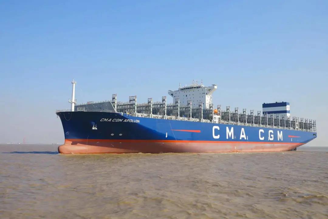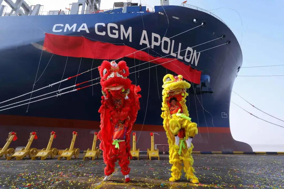 1月4日,新年第一個工作日。滬東中華聯(lián)合中船貿(mào)易為法國達飛海運集團建造的第四艘15000TEU超大型集裝箱船系列船“達飛·阿波羅”號在上海命名交付。