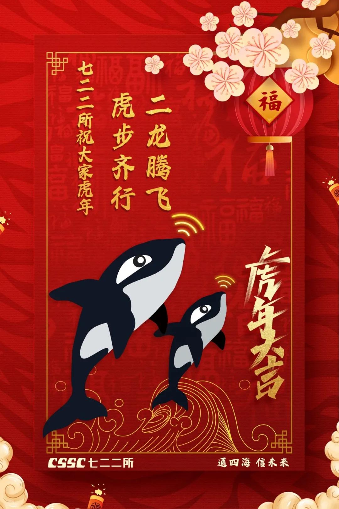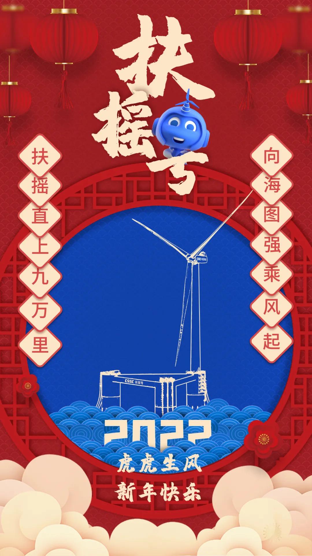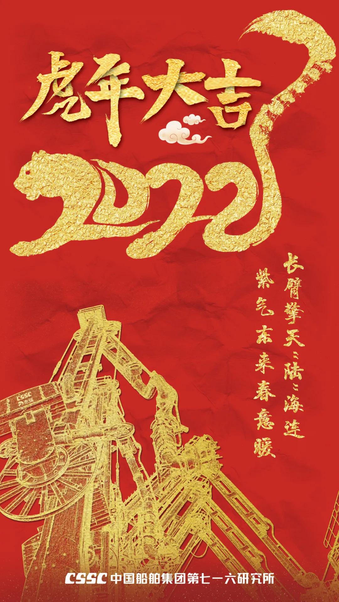 海報(bào)采用國(guó)潮畫風(fēng),中間部分“江小南”穿著新衣舉著虎頭,寓意新的一年中國(guó)船舶人虎虎生威,上面部分以重要產(chǎn)品和廠區(qū)設(shè)備為主,詮釋江南造船建造國(guó)之重器的初心和使命,同時(shí)輔以鞭炮、煙花、燈籠等新年元素,使海報(bào)充滿喜慶祥和的新年氛圍。