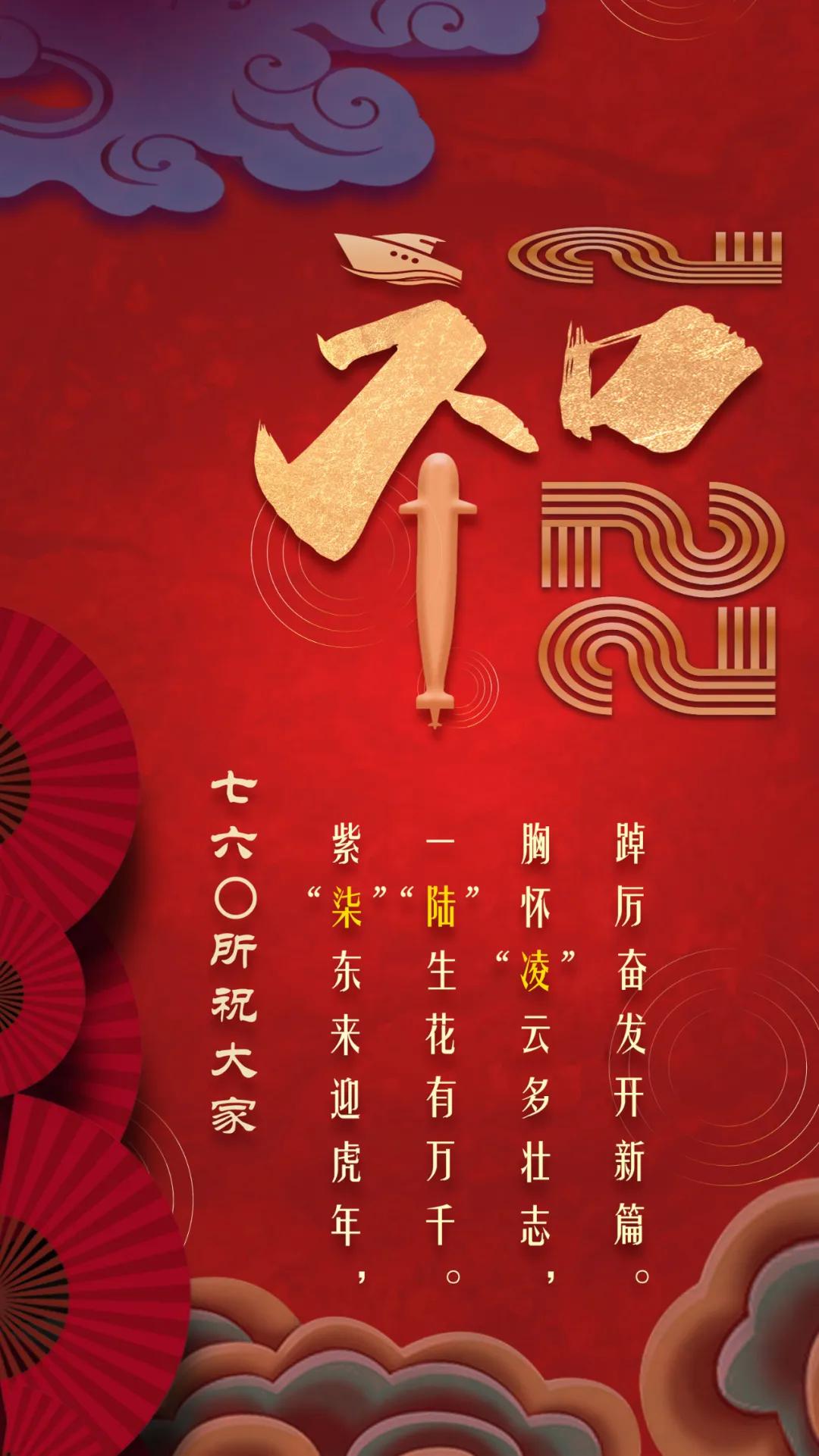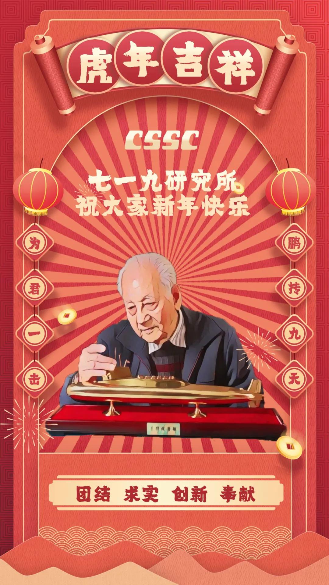 節(jié)日的煙花詮釋喜慶,大紅的燈籠點(diǎn)亮祝福!黃旭華院士作為七一九所典型人物代表,認(rèn)真注視著他為之奉獻(xiàn)一生的艇,也反映了這條戰(zhàn)線上科技工作者們“團(tuán)結(jié)、求實(shí)、創(chuàng)新、奉獻(xiàn)”的工作作風(fēng)?!盀榫粨?鵬摶九天”暗藏“一九”二字,反映出七一九所肩負(fù)的責(zé)任之大,使命之重,表達(dá)了軍工人將船舶事業(yè)做大做強(qiáng)的決心。
