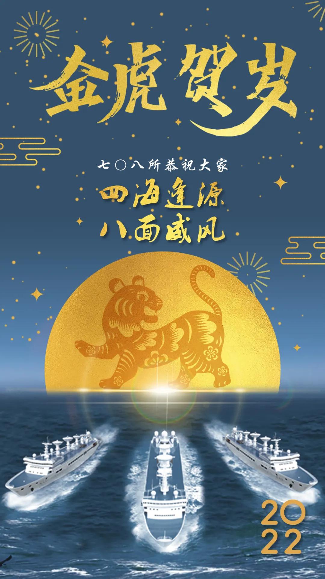 海報(bào)以七〇八所自主研發(fā)設(shè)計(jì)的遠(yuǎn)望號(hào)船隊(duì)、金虎、星空、月亮為元素創(chuàng)作,彰顯祖國(guó)浩瀚海疆、無(wú)垠星空的安寧祥和。四十余年來(lái),遠(yuǎn)望號(hào)船隊(duì)劈波斬浪,守護(hù)著祖國(guó)的花好月圓。從遠(yuǎn)望一號(hào)至遠(yuǎn)望七號(hào),凝結(jié)著幾代中國(guó)船舶人的智慧和汗水,堅(jiān)守一方“浮動(dòng)國(guó)土”。
