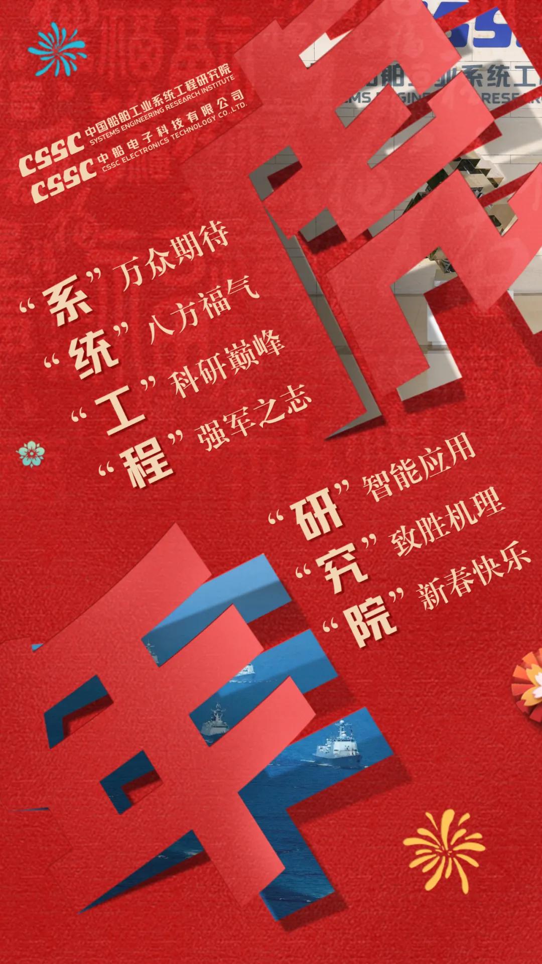 以中國(guó)紅為主色調(diào),運(yùn)用傳統(tǒng)剪紙手法結(jié)合鏤空設(shè)計(jì),寓意揭開虎年新篇章,映入眼簾的艦艇乘風(fēng)破浪、浩浩蕩蕩,傳遞系統(tǒng)工程研究院/中船電科建設(shè)強(qiáng)大海軍的信心和決心!