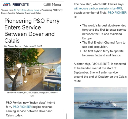 由于“P&O Pioneer”不必掉頭,每次航線將節(jié)省7分鐘的時(shí)間和近60%的燃料消耗,從而能在同樣的航行時(shí)間下降低航行速度、燃料消耗和排放。“P&O Pioneer”的首航標(biāo)志著英法航線進(jìn)入了綠色低碳的新時(shí)代。