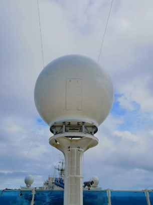 站在煙囪下面往船艏方向看,正對著1個(gè)大球,前前后后,愛達(dá)·魔都號的頂部共有5個(gè)同款大球,它們分別用于收發(fā)來自衛(wèi)星的電視和網(wǎng)絡(luò)信號,船上“5G+WIFI”網(wǎng)絡(luò)系統(tǒng)和艙室的IPTV就是在它們的加持下才得以實(shí)現(xiàn)。