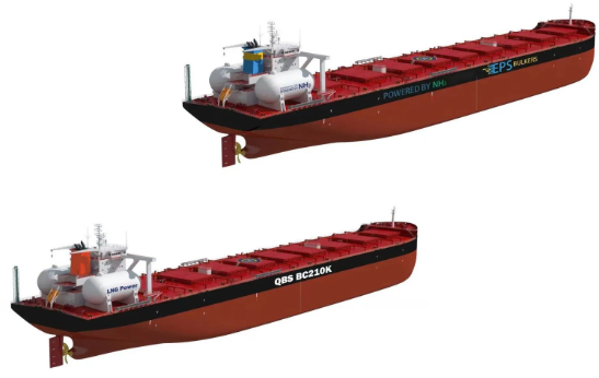 新的一年,北海造船聯(lián)合中船貿(mào)易,與新加坡東太平洋航運(yùn)公司(EPS)簽署了4艘21萬噸Ammonia DF/DF Ready散貨船建造合同,與日本商船三井簽署了3艘21萬噸LNG雙燃料動(dòng)力散貨船建造合同。