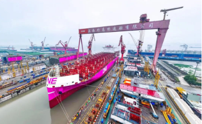 而此次出塢的7000TEU中型集裝箱船,是外高橋造船自2023年3月該型船首制船出塢以來(lái)的第24艘,實(shí)現(xiàn)了平均每月出塢2艘的“外高橋造船速度”。截至目前,外高橋造船今年已實(shí)現(xiàn)3型4艘船舶開(kāi)工、4艘7000TEU集裝箱船入塢搭載、5艘7000TEU集裝箱船出塢、3型8艘船舶交付等多個(gè)生產(chǎn)節(jié)點(diǎn),為全面高質(zhì)量完成全年造船任務(wù)奠定了堅(jiān)實(shí)基礎(chǔ)。