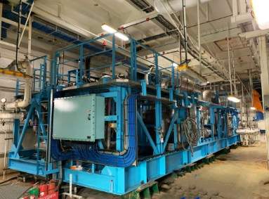 中國船舶集團七一一所自主研制的該船液貨系統(tǒng)的核心設備—LNG深冷式再液化裝置,歷時3年的技術攻關,突破多項關鍵技術,成功開發(fā)了大功率磁懸浮壓縮/膨脹機組,實現(xiàn)零下175℃的高效大冷量輸出。