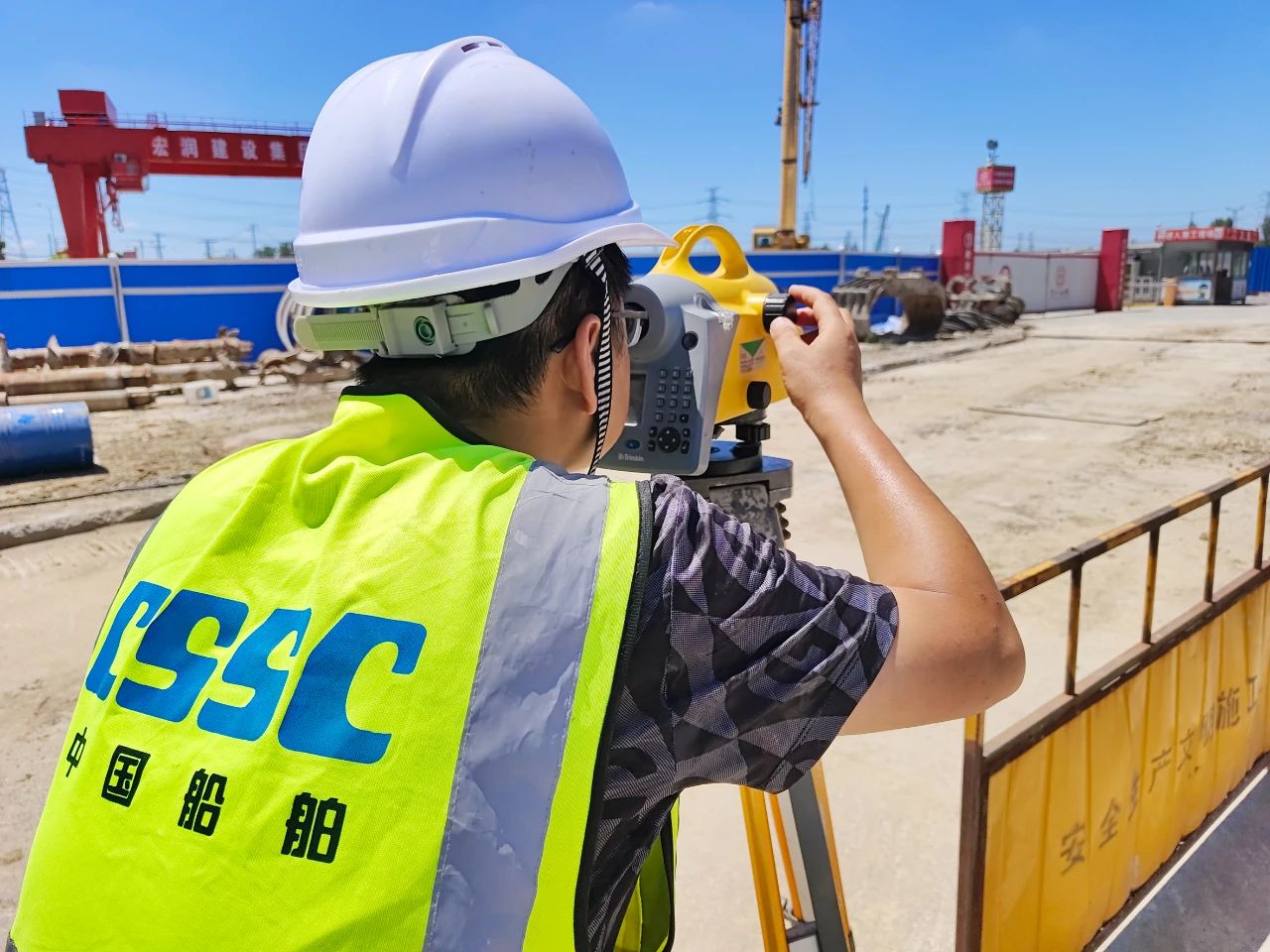 中船九院——子公司中船勘院崇明線軸線復(fù)測1標(biāo)項(xiàng)目部頂著烈日進(jìn)行復(fù)測。