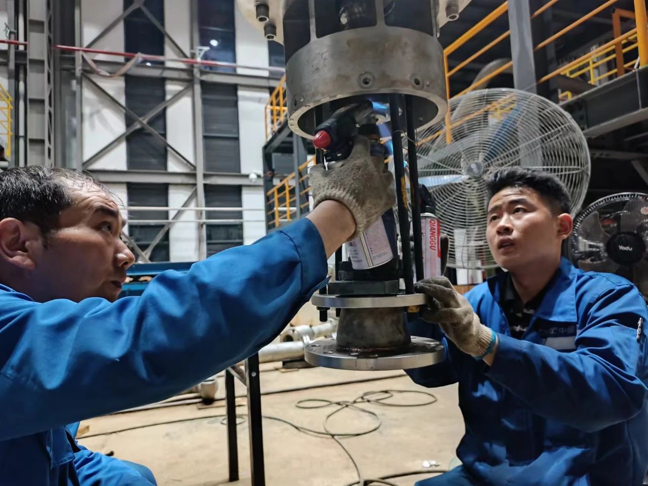 七二五所——雙瑞精鑄鈦板帶車間的師傅們正頂著酷暑進(jìn)行修復(fù)裝配面工作。