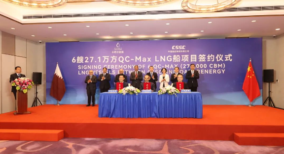 9月9日,三方新簽了6艘全球最大27.1萬立方米超大型LNG船訂單。至此,三方已累計簽訂24艘27.1萬立方米超大型LNG船、12艘17.4萬立方米大型LNG船,以載氣量計,位居全球各船廠之首??ㄋ柲茉词聞?wù)國務(wù)大臣、卡塔爾能源總裁兼首席執(zhí)行官薩阿德·謝里達·阿爾卡比,上海市副市長陳杰,中國船舶集團黨組成員、總會計師賈海英等出席簽約儀式。