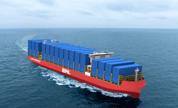 該型船是滬東中華自主研發(fā)設(shè)計(jì)、且針對太平船務(wù)運(yùn)營特點(diǎn)特別量身打造的一款綠色環(huán)保型集裝箱船,可裝載1308個(gè)冷藏集裝箱。搭載LNG雙燃料動力推進(jìn)系統(tǒng),配備滬東中華自主研發(fā)的7600立方米B型LNG燃料艙,確保在燃?xì)饽J较?3000海里的續(xù)航能力。