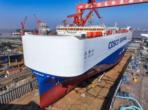 12月2日,中國(guó)船舶集團(tuán)旗下外高橋造船首制8600車液化天然氣(LNG)雙燃料動(dòng)力汽車運(yùn)輸船(PCTC)順利出塢,達(dá)成船塢周期100天既定目標(biāo),即下塢至起浮50天,起浮至出塢50天,在民船建造領(lǐng)域繼續(xù)保持“加速度”。