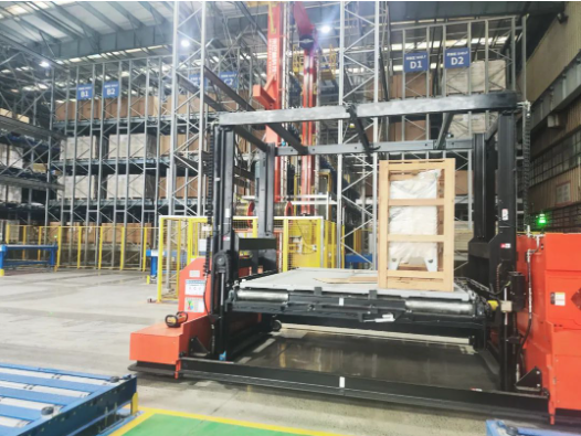 該系統(tǒng)單托盤舉升能力達(dá)到6噸,適用于各類大、重、分布不均、形狀各異物資的立體存儲。采用業(yè)內(nèi)首創(chuàng)的駛?cè)胧阶詣訉?dǎo)向車作為移載動力,通過自主研發(fā)的重型堆垛裝備與智能控制系統(tǒng)聯(lián)動,能夠在復(fù)雜的立體倉庫環(huán)境中準(zhǔn)確定位目標(biāo)并快速平穩(wěn)完成作業(yè)任務(wù)。同時,通過引入現(xiàn)代物聯(lián)網(wǎng)和數(shù)字孿生等先進(jìn)技術(shù),實現(xiàn)了倉儲物流的智能可視化運營。