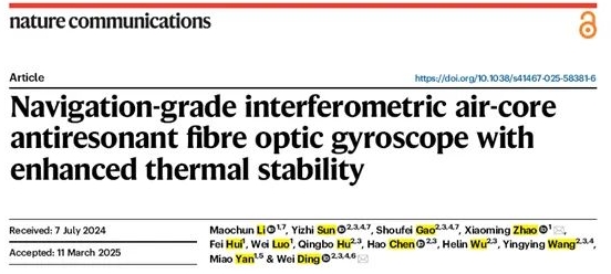 4月14日,中船集團(tuán)旗下七〇七所和暨南大學(xué)等構(gòu)建的深度合作研究團(tuán)隊(duì),在國際權(quán)威頂級期刊《Nature?Communications》發(fā)表了題為“Navigation-grade interferometric air-core anti-resonant fibre optic gyroscope with enhanced thermal stability”的最新研究成果,實(shí)現(xiàn)了空芯光纖陀螺領(lǐng)域的新突破。