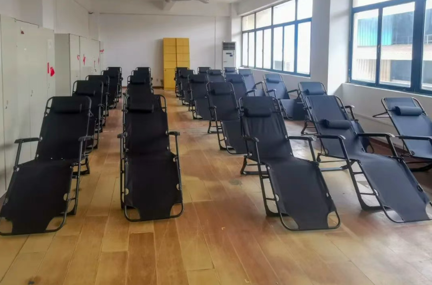 外高橋造船對現(xiàn)有場地資源進行優(yōu)化改造,在辦公樓、食堂等17處區(qū)域為員工設(shè)立了休息區(qū)域,為高溫天奮戰(zhàn)在一線的職工提供舒適、充足的納涼空間。休息點設(shè)有空調(diào)、風扇等降溫設(shè)備,并根據(jù)各部門使用環(huán)境,配備折疊床、涼席等物資,滿足一線職工高溫休息需求。