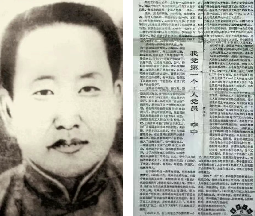 1920年8月,上海共產(chǎn)黨早期組織成立,積極建立工人組織。1921年,李中由社會主義青年團(tuán)團(tuán)員轉(zhuǎn)為中國共產(chǎn)黨黨員,成為中國共產(chǎn)黨第一位工人黨員。
